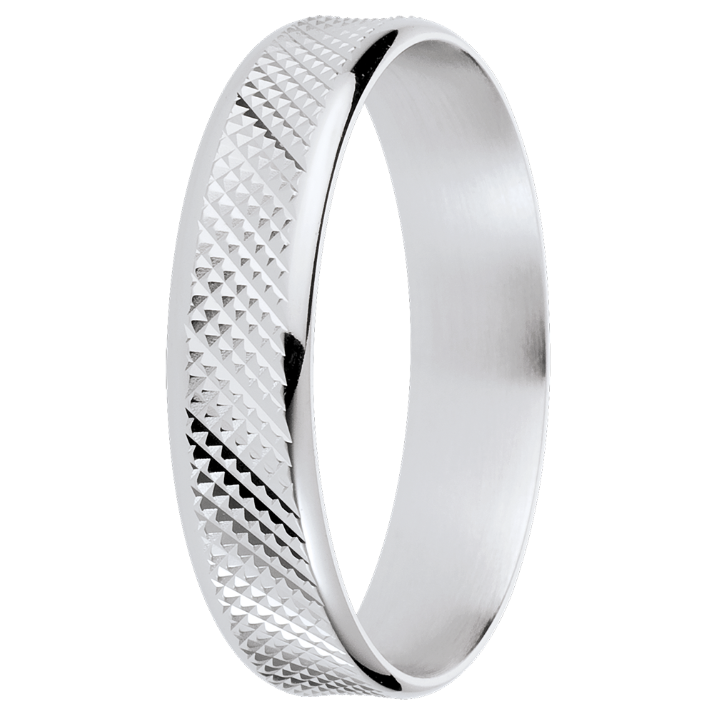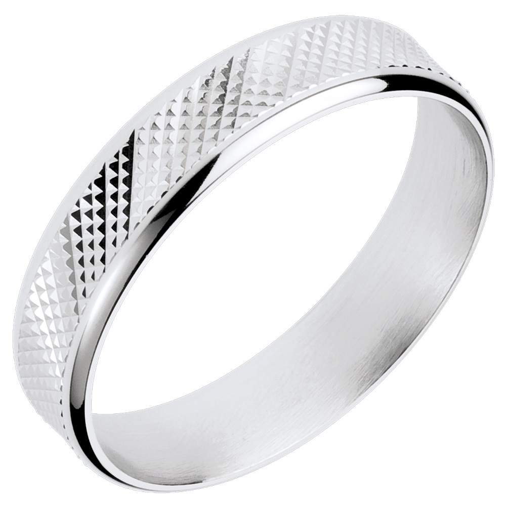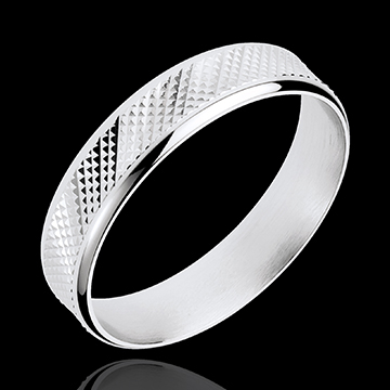 Ein futuristisches Muster ziert diesen eigenwilligen und stilvollen Weissgoldring.