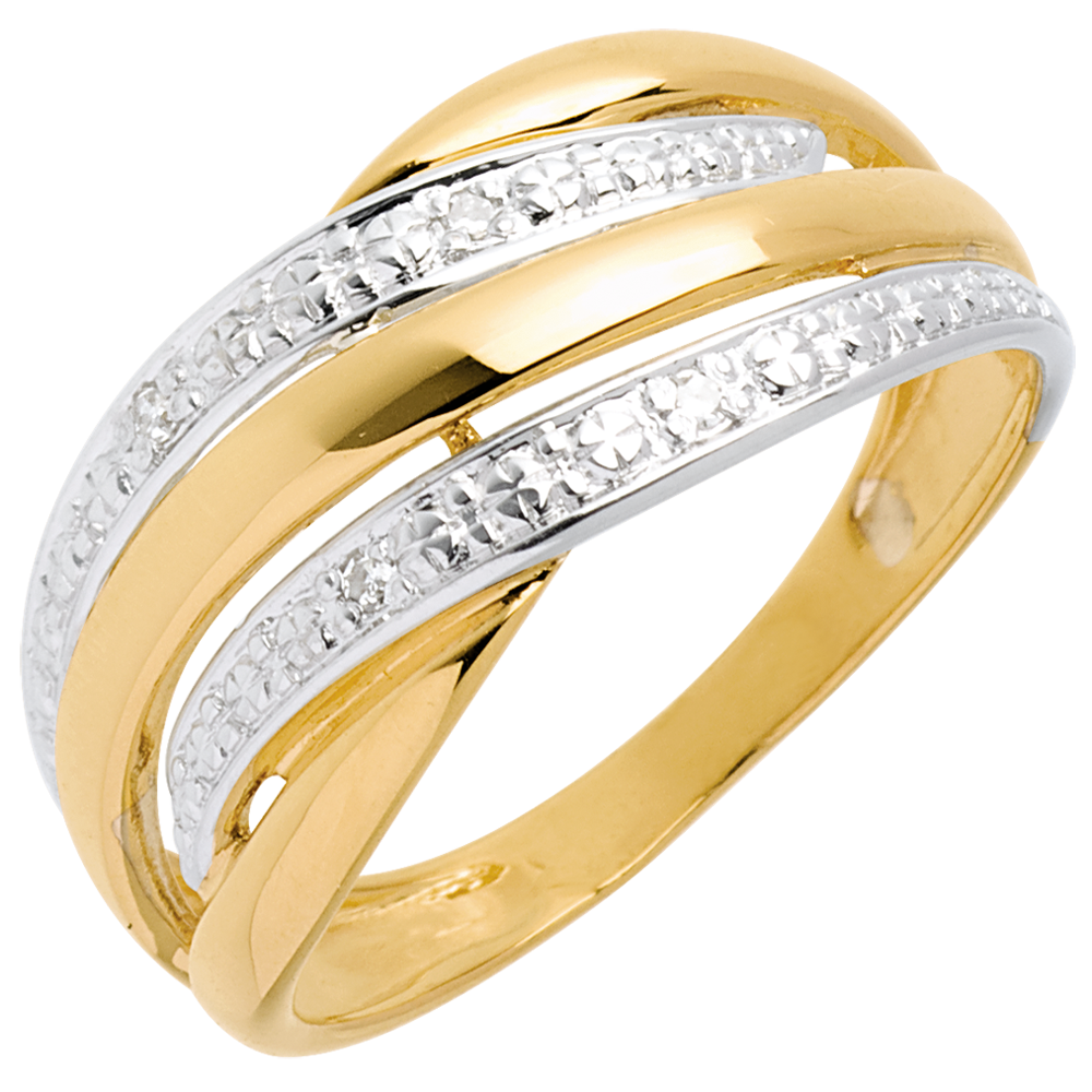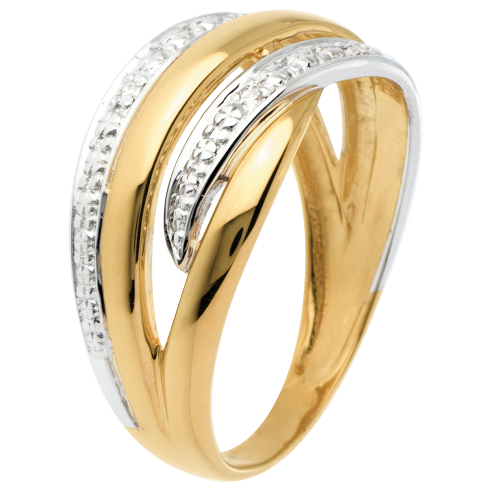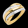 Ein arabeskenartiger Ring in Schlangenform zweireihig besetzt mit glänzenden Diamanten. 4 Diamanten : 0.02 Karat - Weiß-und Gelbgold (750/-): 2.8 g. Weitere Abmessungen