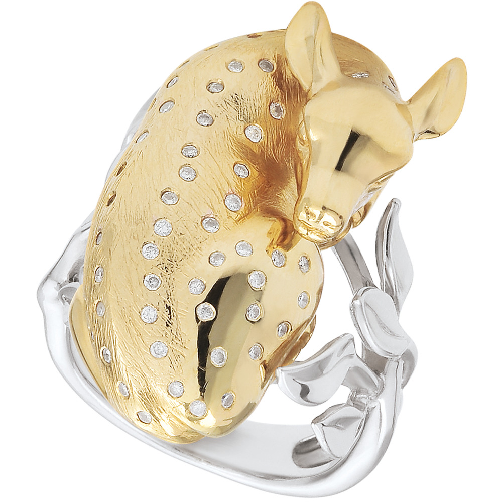 Besetzt mit 60 Diamanten der HSI-Qualität und einem Gesamtgewicht von 0,26 Karat, verbindet dieses Schmuckstück dezenten Glanz mit einem raffinierten Tiermotiv.