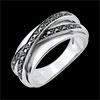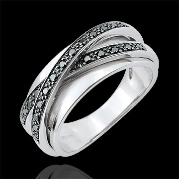 Ring Saturn Spiegel - Weißgold und schwarze Diamanten - 23 Diamanten - 9 karat