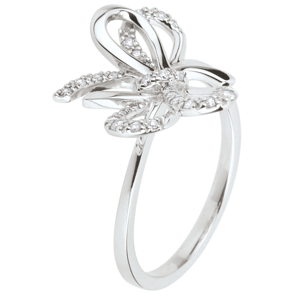 Eine verspielte und luftige Schleife schmiegt sich an Ihre Hand und funkelt mit Silber und Diamanten. 25 Diamanten : 0.16 Karat - Sterlingsilber 925/-: 2.6 g. Weitere Abmessungen