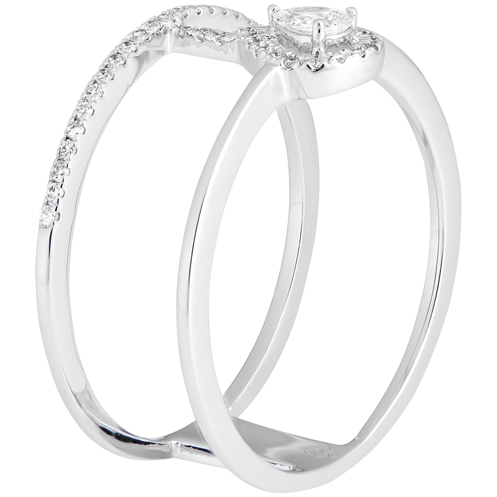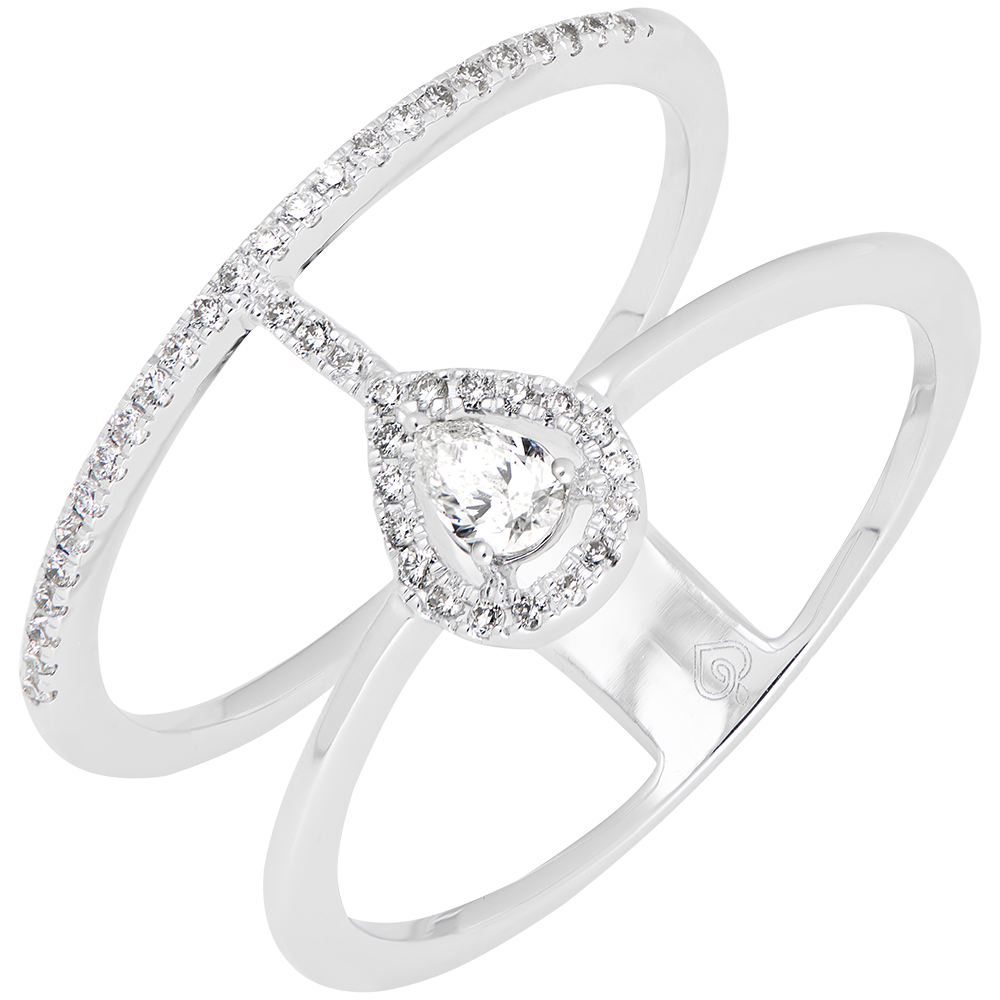 Die Krone eines Diamanten in Tropfenform, welche auf einem zweifachen Ringrahmen thront - ein schmaler und eleganter Ring.