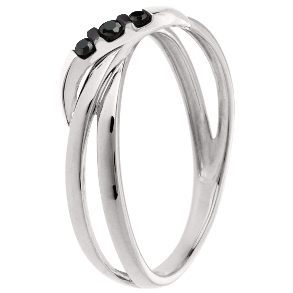 Die Bewegung und das Spiel des Weißgoldrings verbunden einer Trilogie aus schwarzen Diamanten.