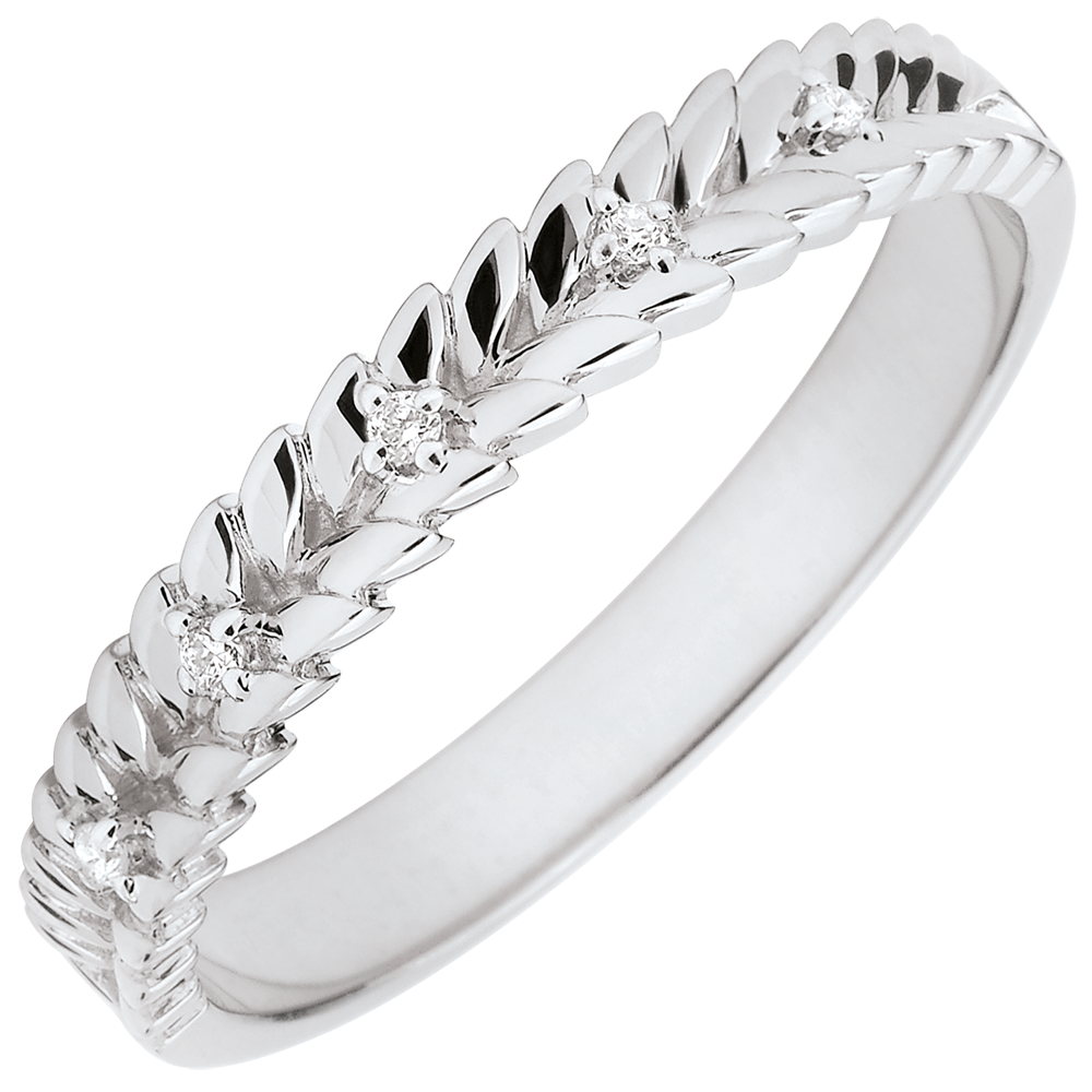 Zarte Diamanten haben sich in das goldene Flechtwerk dieses außergewöhnlichen Ringes in edlem Weißgold geschlichen. 5 Diamanten : 0.03 Karat - Weißgold (750/-): 2.8 g. Weitere Abmessungen