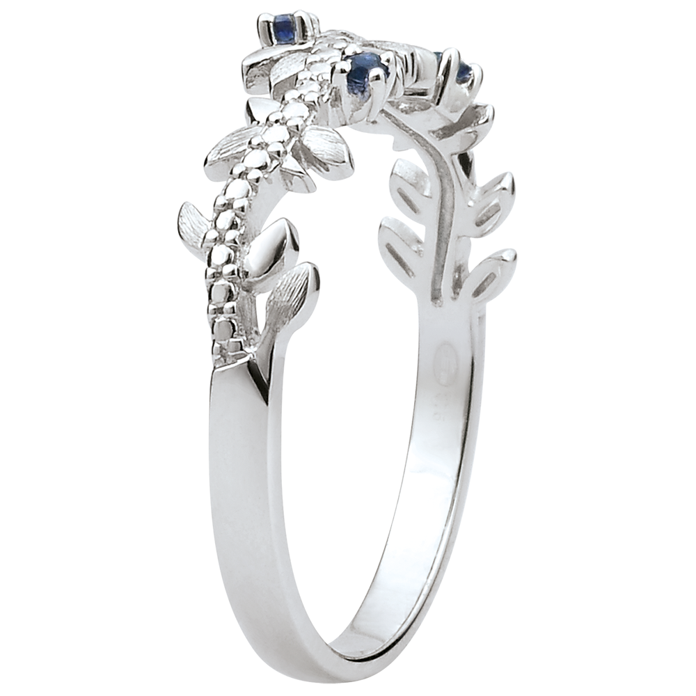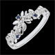 Ein romantisches Zusammenspiel aus glänzendem und eismattem Weißgold, welche sich in den verschiedenen Blattformen dieses mit Saphiren und Diamanten besetzten Ringes wiederfinden. 4 Diamanten : 0.02 Karat - Weißgold (750/-): 2.4 g. Blauer Saphir : 3 - Diamant : 4 - Total: 0.03 Karat Weitere Abmessungen