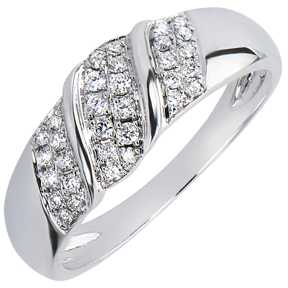 Ein Ring mit 3 diamantbesetzten Bändern, die ihm eine zarte Bewegung verleihen. 32 Diamanten : 0.2 Karat - Weißgold (375/-): 2.4 g. Weitere Abmessungen