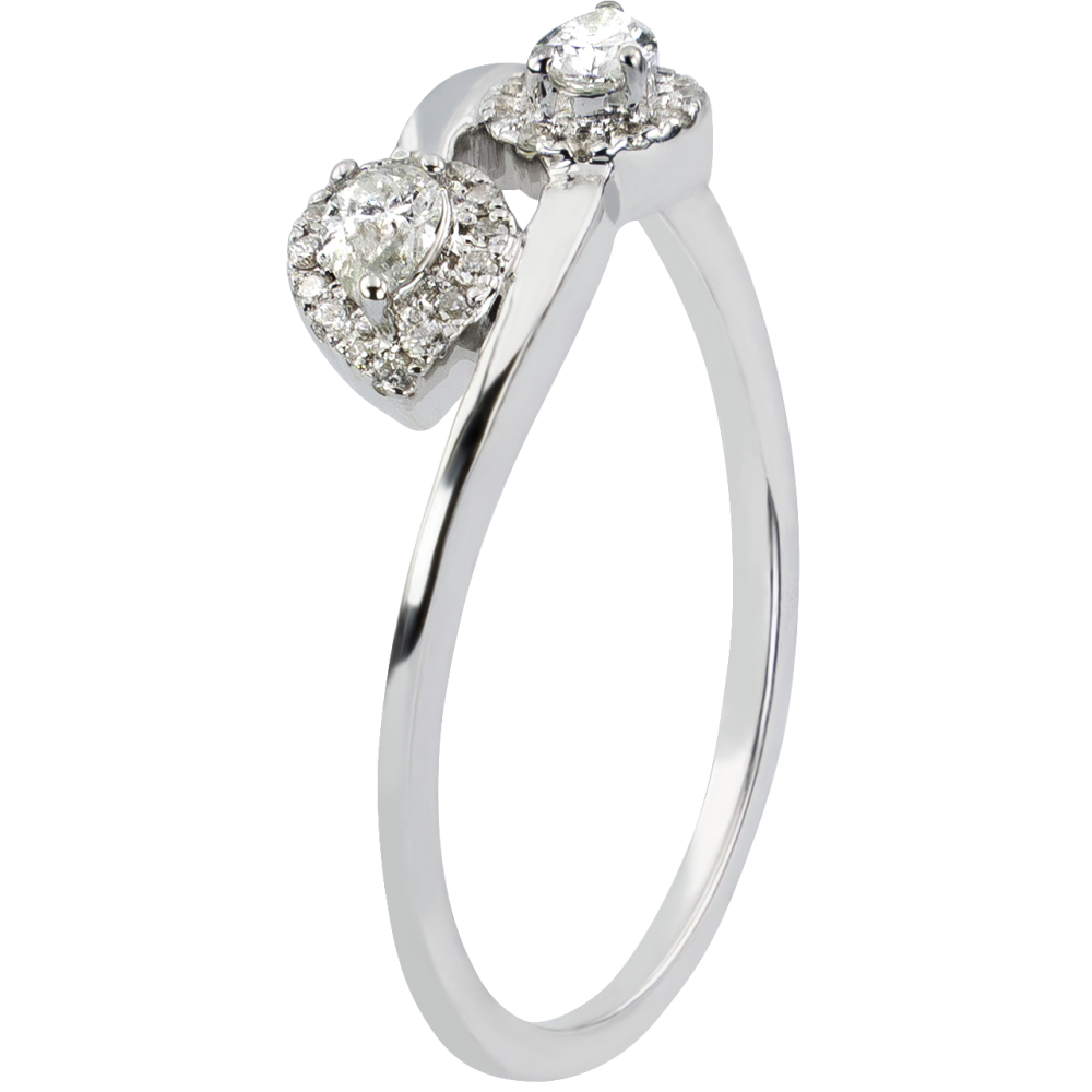 Ring Vielfalt - Du & Ich Tropfen Diamanten - 18 Karat Weißgold und Diamanten