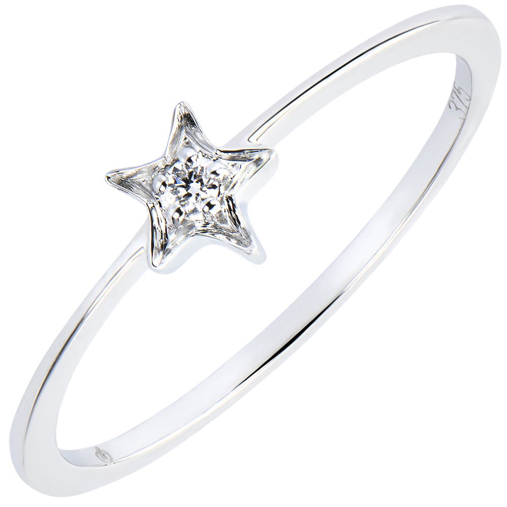 Das ikonische Sternenmotiv in Form eines dezenten und einzigartigen Ringes in Weißgold mit einem Diamanten besetzt.