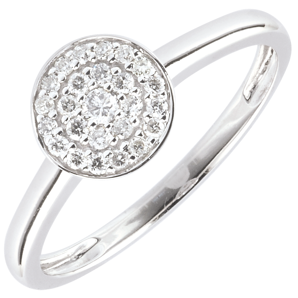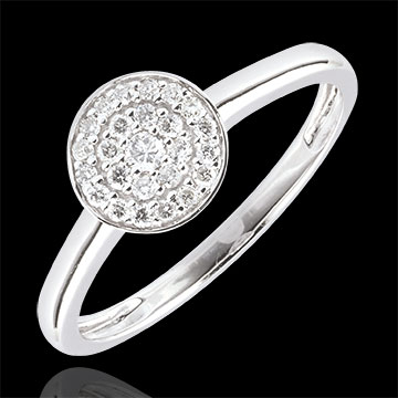 Eine Konstellation von Diamanten, geballt in einem Kreis, der in vollem Glanze funkelt. 25 Diamanten : 0.16 Karat - Weißgold (750/-): 2 g. Pavé aus natürlichen Diamanten : 25 - Total: 0.163 Karat Weitere Abmessungen