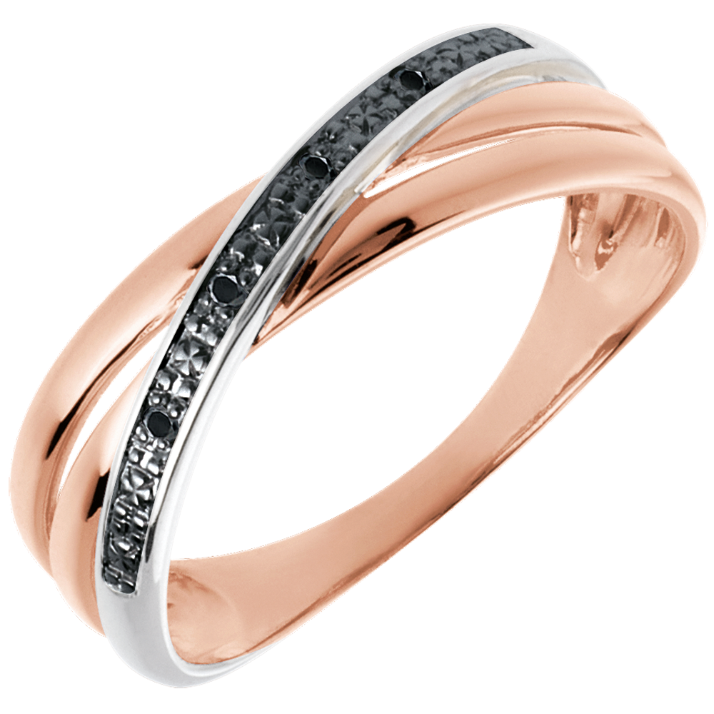 Ring Saturnduett Variation - Roségold und schwarze Diamanten - 18 Karat