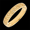 Ein zarter Trauring aus Gold und Edelsteinen.