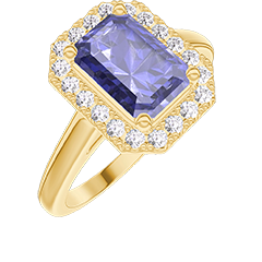 Ring Gelbgold 375/-(9Kt) - Blauer Saphir Rechteckig 1 Karat - Halo Diamant