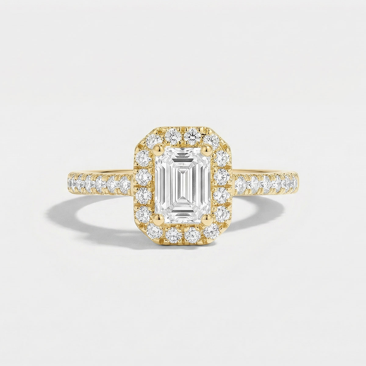 « L'ATELIER » NR. 190101Ring Gelbgold 750/-(18Kt) - Labordiamant Rechteckig 0.5 Karat - Halo Labordiamant - Fassung Labordiamant 4.7