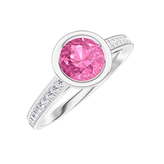 Ring Weißgold 750/-(18Kt) - Rosa Saphir rund 0.5 Karat - Fassung Diamant