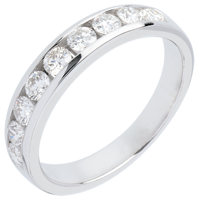 Trauring zur Hälfte mit Diamanten besetzt in Weissgold - Kanalfassung - 0.5 Karat - 11 Diamanten