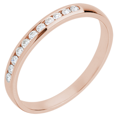 Trauring zur Hälfte mit Diamanten besetzt in Roségold - Kanalfassung - 11 Diamanten