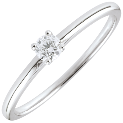 Ein Solitär wird von einer 4er Krappenfassung auf einer edlen und modernen Fassung gehalten. 1 Diamant : 0.1 Karat - Weißgold (375/-): 1.1 g. Weitere Abmessungen