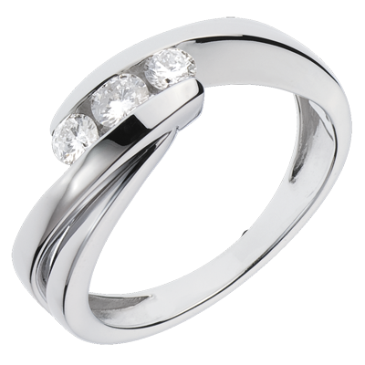 Dieser elegante Diamantring strahlt Reinheit und Eleganz aus: eine edle Diamantentrilogie auf einer fein geschwungenen Weißgoldfassung. 3 Diamanten : 0.32 Karat - Weißgold (750/-): 3 g. Weitere Abmessungen