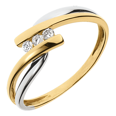 Trilogie Ring Kostbarer Kokon - Tango - Weiß-und Gelbgold - 3 Diamanten 0.07 Karat - 18 Karat