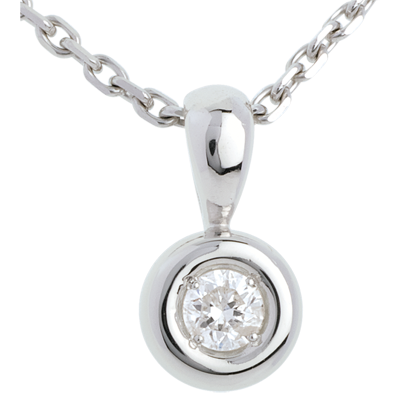 Ein funkelnder Diamant lieblich eingefasst in einen zarten Rahmen aus Weissgold. Ohne Kette. 1 Diamant : 0.14 Karat - Weißgold (750/-): 0.9 g. Weitere Abmessungen