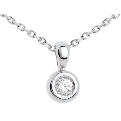 Ein funkelnder Diamant lieblich eingefasst in einen zarten Rahmen aus Weissgold. Ohne Kette. 1 Diamant : 0.18 Karat - Weißgold (750/-): 1.1 g. Weitere Abmessungen