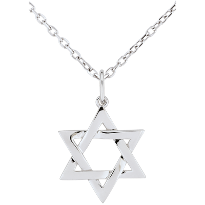 Traditioneller Anhänger, der den Davidstern und seine sechs kostbaren Zacken aus Weißgold darstellt. Ohne Kette. Weißgold (375/-): 0.5 g. Weitere Abmessungen