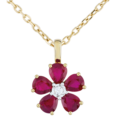 Zwei Blüten aus rubinen und einem Herz aus Diamanten. Zwei seltene und wertvolle Blüten.