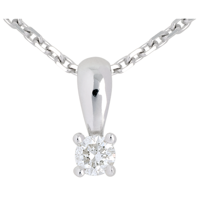 Dieser funkelnde Diamant in einer 4er Krappenfassung verkörpert zarte Eleganz. Ohne Kette. 1 Diamant : 0.16 Karat - Weißgold (750/-): 0.4 g. Weitere Abmessungen