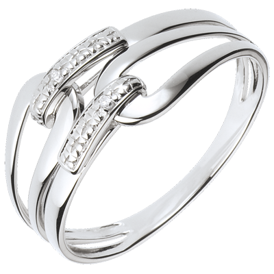 Diese kunstvolle Verschlingung von Bändern aus Weissgold und Diamanten symbolisiert eine untrennbare Einheit.