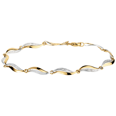 Dieses dezente Armband besteht aus verschlungenen Gliedern aus Gelbgold und diamantenbesetzem Weißgold. 22 Diamanten : 0.09 Karat - Weiß-und Gelbgold (750/-): 3.8 g. Weitere Abmessungen