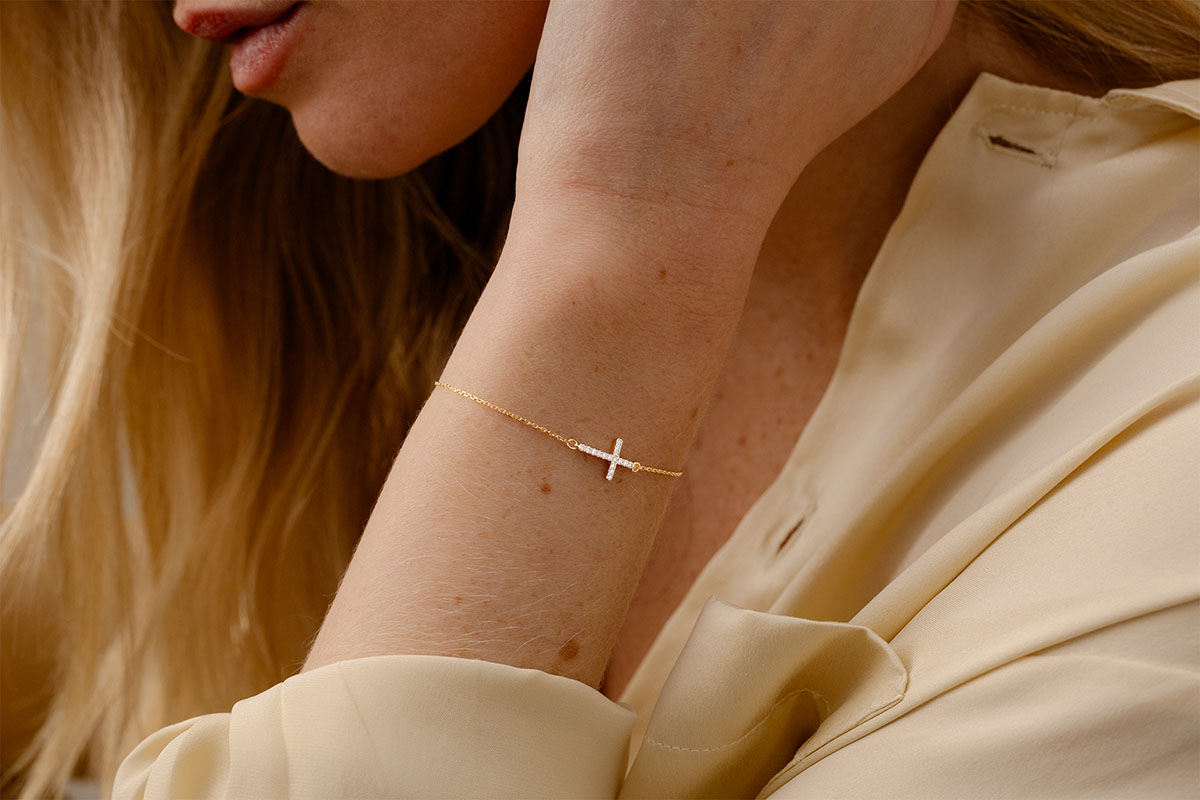 FRISCHE NR. 2Armband Kreuz - Gelbgold 750/-(18Kt) - Diamant ID : 2843 4.7