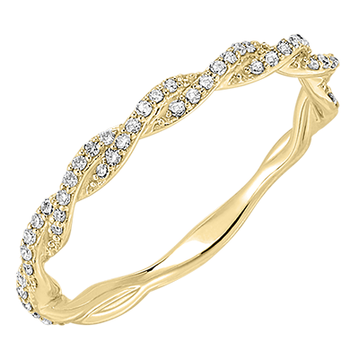 Ein Ring mit zwei ineinander verschlungen Gelbgoldsträngen und Diamantbesatz - wie eine ewige Umarmung.