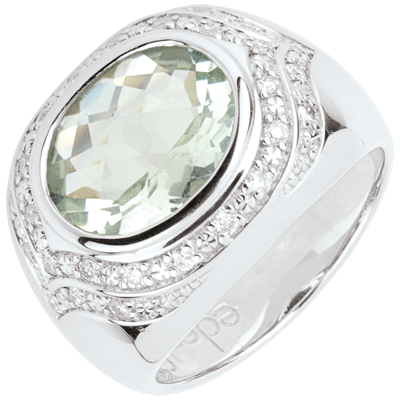 Ring Horus mit grünem Amethyst - Silber, Diamanten und Halbedelsteine