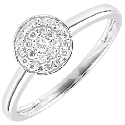 Eine Konstellation von Diamanten, geballt in einem Kreis, der in vollem Glanze funkelt. 25 Diamanten : 0.16 Karat - Weißgold (750/-): 2 g. Pavé aus natürlichen Diamanten : 25 - Total: 0.163 Karat Weitere Abmessungen