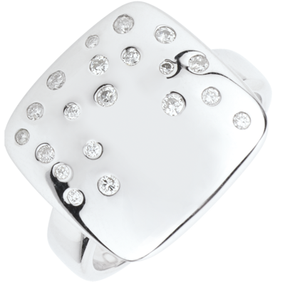 Ein Kissen aus Silber, besetzt mit Diamanten, schmiegt sich an Ihren Finger um Ihnen absoloute Modernität zu verleihen. 20 Diamanten : 0.27 Karat - Sterlingsilber 925/-: 7.2 g. Weitere Abmessungen
