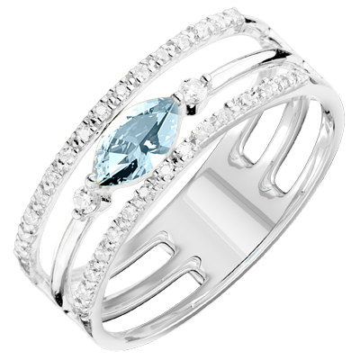 Zwei zarten Augenlidern gleich, schützen die diamantbesetzten Goldlinien den kostbaren Augapfel, welcher durch einen blauen Topas verkörpert wird. Ein aufwendig gestalteter Ring, welcher sich hervorragend im Alltag oder als Eyecatcher zu besonderen Anlässen tragen lässt.