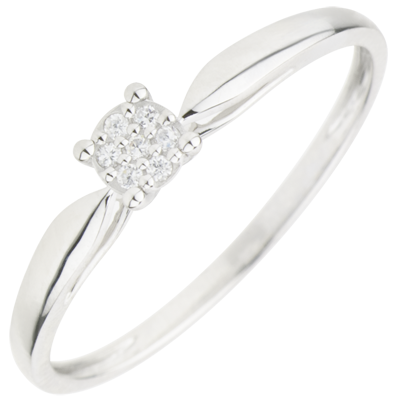 Eine Myriade aus Diamanten, wie Sterne im Rendez- vous, bildet einen Schwungvollen Solitär. 7 Diamanten : 0.04 Karat - Weißgold (750/-): 1.2 g. Pavé aus natürlichen Diamanten : 7 - Total: 0.04 Karat Weitere Abmessungen