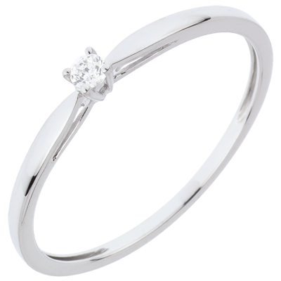 Ein Ring zart wie Schilfgras, gekrönt von einem Diamant in einer 4er Krappenfassung. 1 Diamant : 0.04 Karat - Weißgold (750/-): 1 g. Weitere Abmessungen