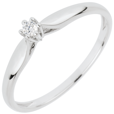 Ein Ring zart wie Schilfgras, gekrönt von einem Diamant in einer 6er Krappenfassung. 1 Diamant : 0.05 Karat - Weißgold (750/-): 1.1 g. Weitere Abmessungen