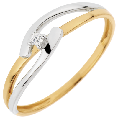 Solitär Ring Kostbarer Kokon - Doppelte Union - Gelb und Weißgold - 0. 02 Karat - 18 Karat