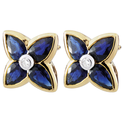 Ein funkelnder Stein aus vier Saphiren und einem Diamanten im inneren.