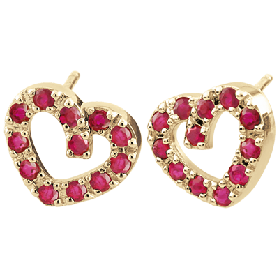 Süße Ohrstecker aus Gelbgold, besetzt mit Rubinen. Sie lassen Ihr Gesicht romantisch erstrahlen.