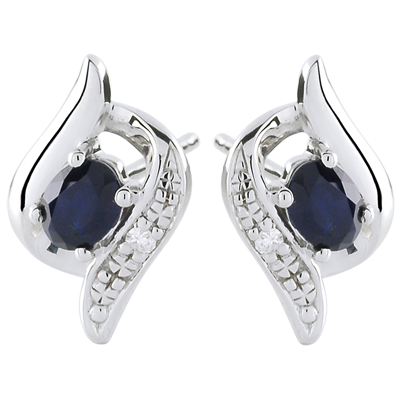 Eine Bewegung aus Gold und Diamanten umschließt einen Saphir an jedem der Ohrstecker. Ein weibliches und originelles Paar Ohrstecker.