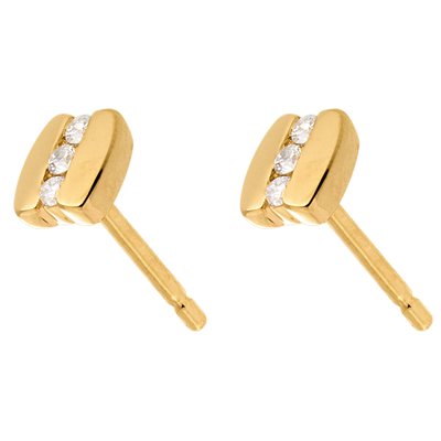 Drei funkelnde Diamanten sind perfekt versiegelt zwischen zwei Bügeln aus Gelbgold. 6 Diamanten : 0.09 Karat - Gelbgold (750/-): 1.1 g. Weitere Abmessungen