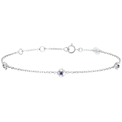Die Blütenblätter dieses grazilen Armbands öffnen sich und offenbaren ein Herz aus Saphir. Ein Armband für jeden Tag. Weißgold (375/-): 1 g. Blauer Saphir : 3 - Total: 0.03 Karat Weitere Abmessungen