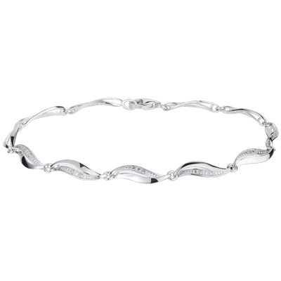 Dieses dezente Armband besteht aus verschlungenen Gliedern aus Weißgold und diamantenbesetzem Weißgold.