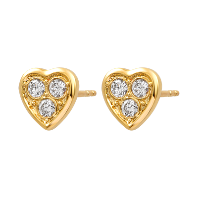 Zwei Herzen, jeweils mit sechs feinen Diamanten besetzt, in einem klaren, eleganten Design.Eine leuchtende, gefühlvolle Note – dezent und stilvoll. Gelbgold (375/-): 1.1 g. Weitere Abmessungen