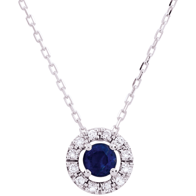 Ein mit Diamanten besetzter Kreis lässt einen Saphir erstrahlen. Mit Goldkette 375/-. Mit Kette 42 cm + Verlängerung von 3 cm; 375/-. 12 Diamanten : 0.07 Karat - Weißgold (375/-): 1.7 g. Blauer Saphir : 1 - Total: 0.36 Karat Weitere Abmessungen
