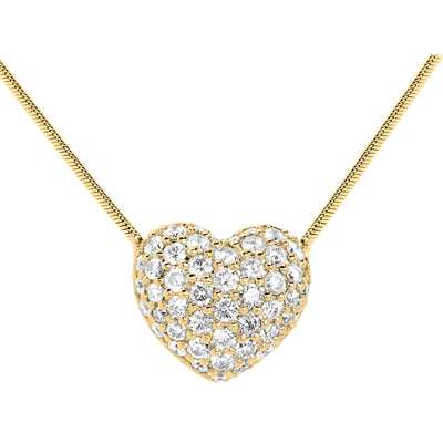 Dieses einzigartige Herzcollier steht für funkelnde Leidenschaft. Mit Goldkette 750/1000. Mit Kette 42 cm + Verlängerung von 3 cm; 750/-. 50 Diamanten : 0.85 Karat - Gelbgold (750/-): 5.8 g. Weitere Abmessungen
