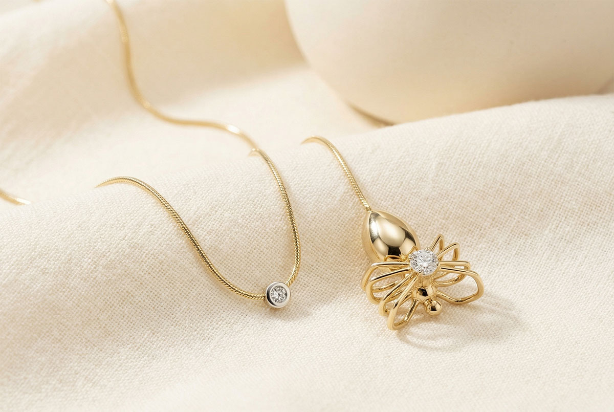 Collier Spaziergang der Sinne - Spinnenkönigin - Gelbgold und Diamanten